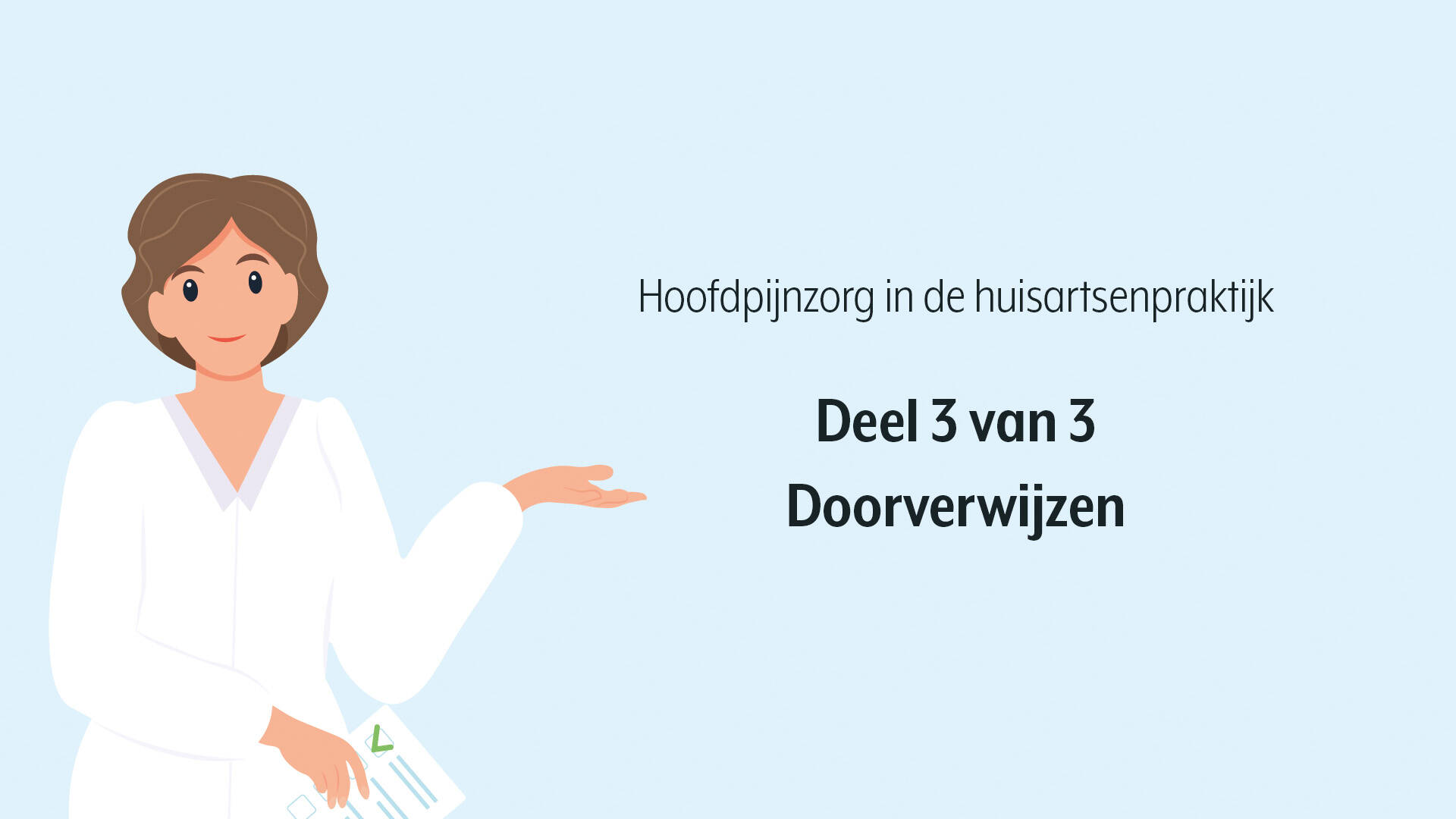 Dit drieluik heeft praktische handvatten geboden voor het versterken van hoofdpijnzorg in de huisartsenpraktijk: van diagnostiek en behandeling, via het managen van patiëntverwachtingen, tot tijdige en effectieve doorverwijzing. De huisartsenpraktijk speelt een centrale rol in het vroegtijdig herkennen, begeleiden en waar nodig verwijzen van patiënten met hoofdpijn. Wanneer zorgverleners elkaar goed informeren, kennis delen en samenwerken, kan de kwaliteit van zorg worden verbeterd en krijgen patiënten de behandeling die zij nodig hebben op het juiste moment. Zo maken we een concreet verschil voor mensen met migraine en andere vormen van hoofdpijn.